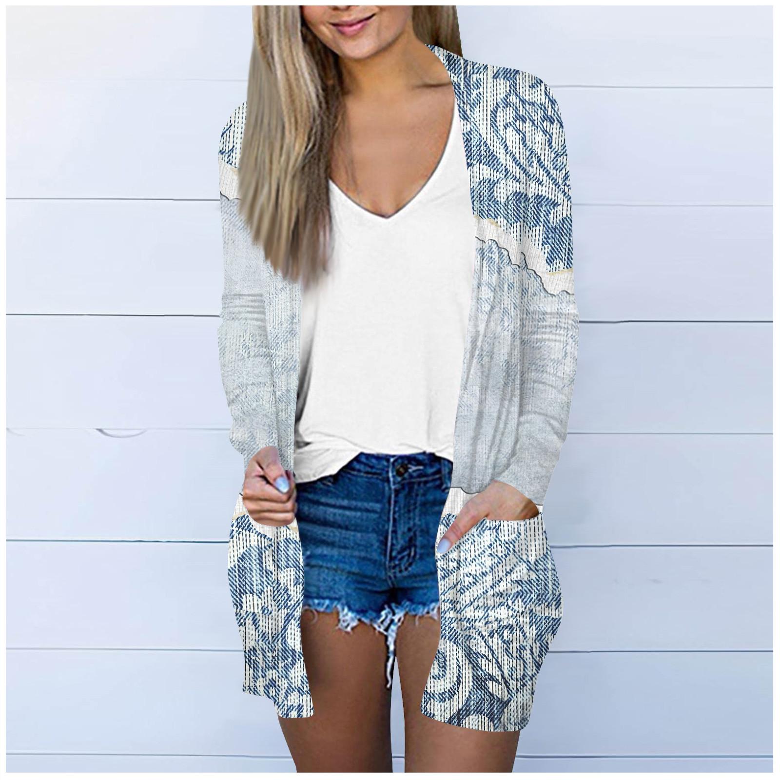 Женская модная свободная повседневная куртка-кардиган средней длины с длинными рукавами и принтом, топ L