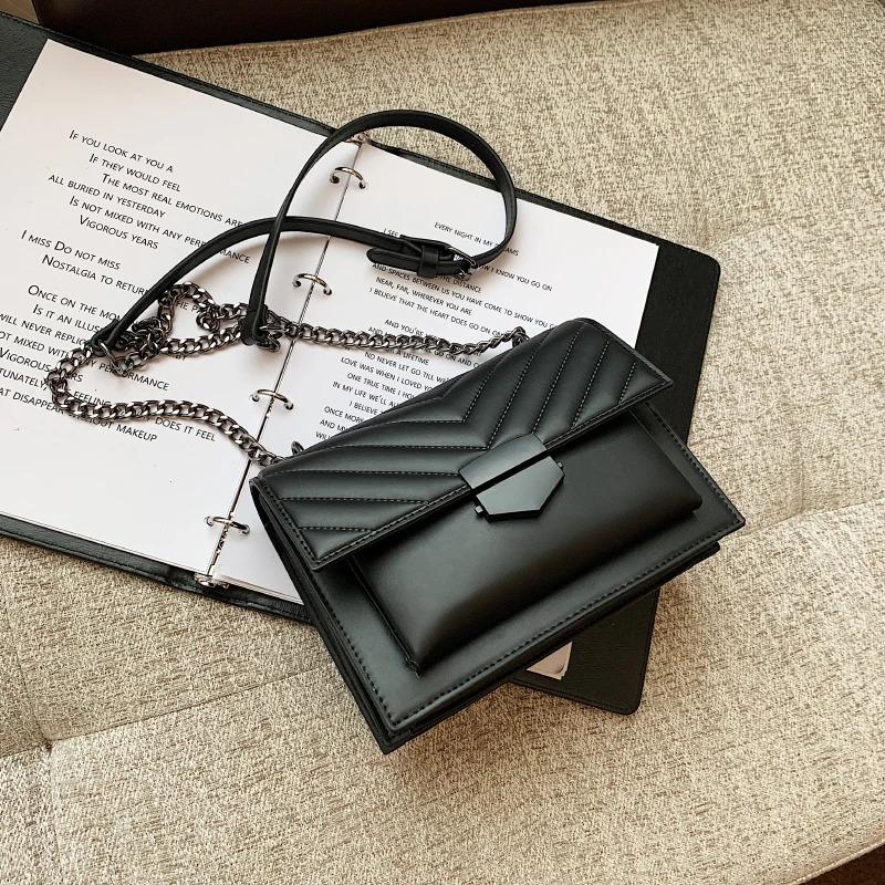 Женская модная сумка на цепочке, роскошная дизайнерская брендовая дамская сумка, Повседневная сумка-мессенджер, черная Маленькая квадратн...