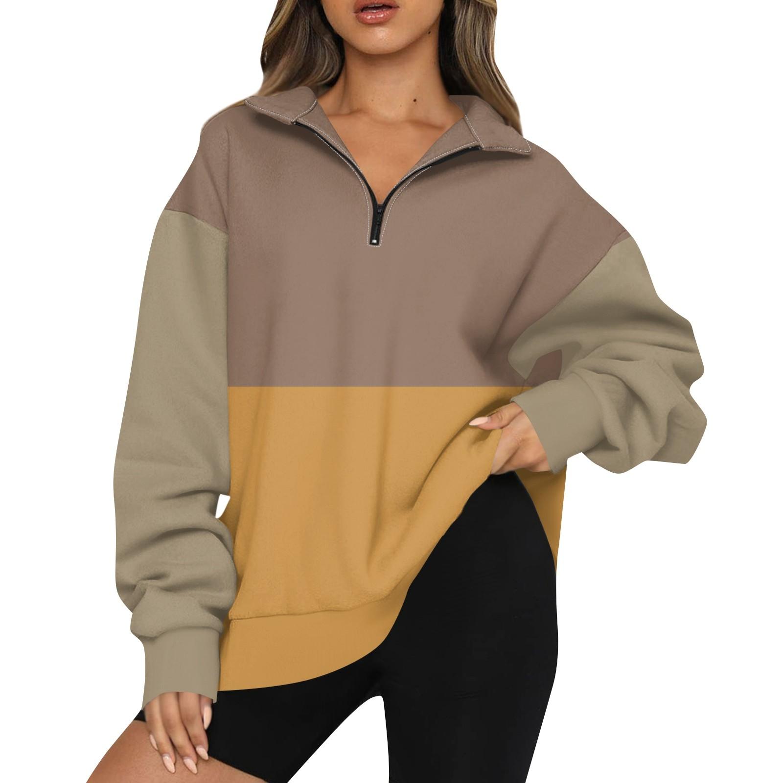 Женская модная толстовка с длинным рукавом и принтом в полоску с отворотом на молнии XL жёлтый