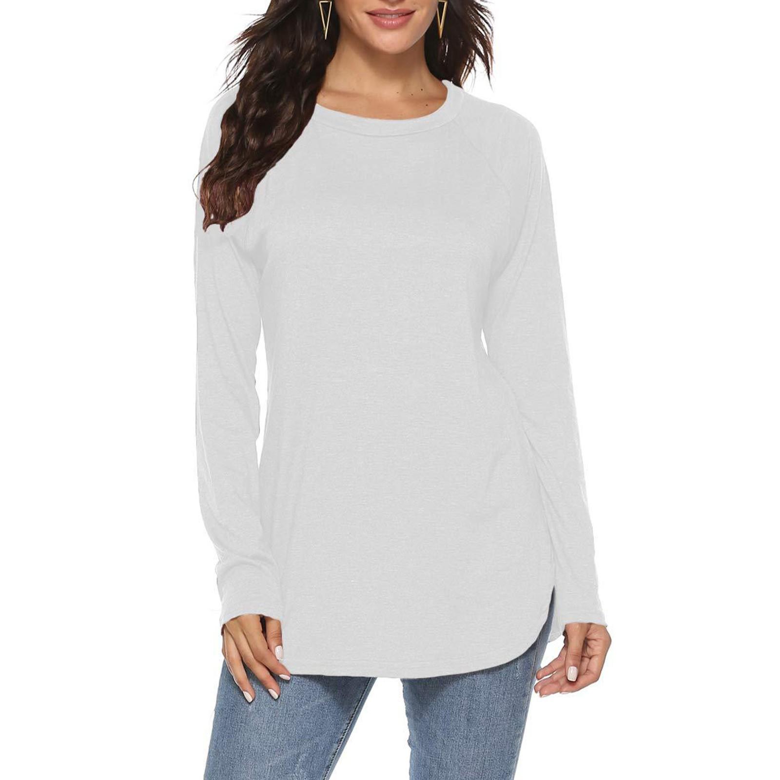 Женская модная футболка с длинным рукавом, базовый топ со свободной талией и круглым вырезом S белый