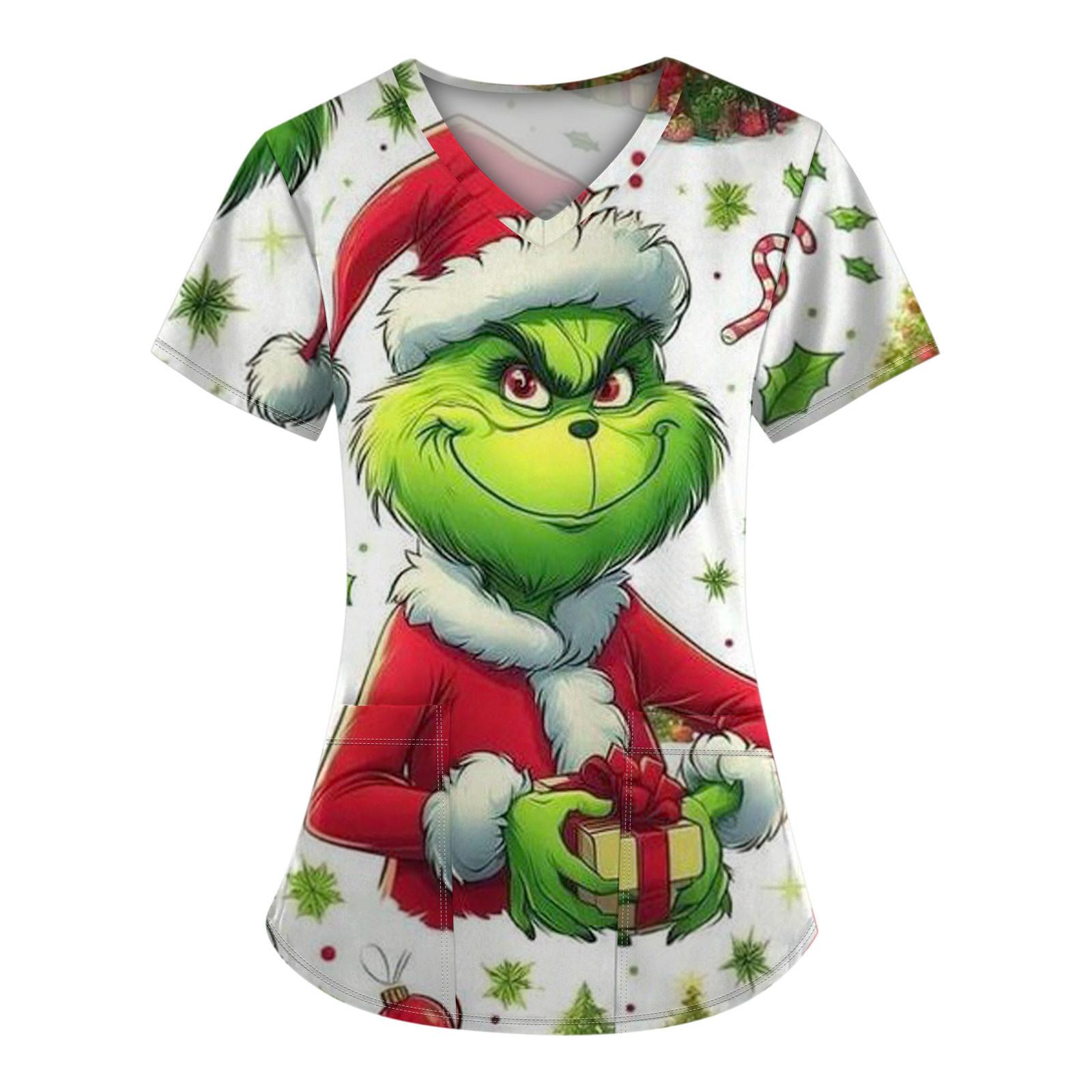 Женская модная футболка с коротким рукавом и V-образным вырезом, карманом и рождественским принтом S красный