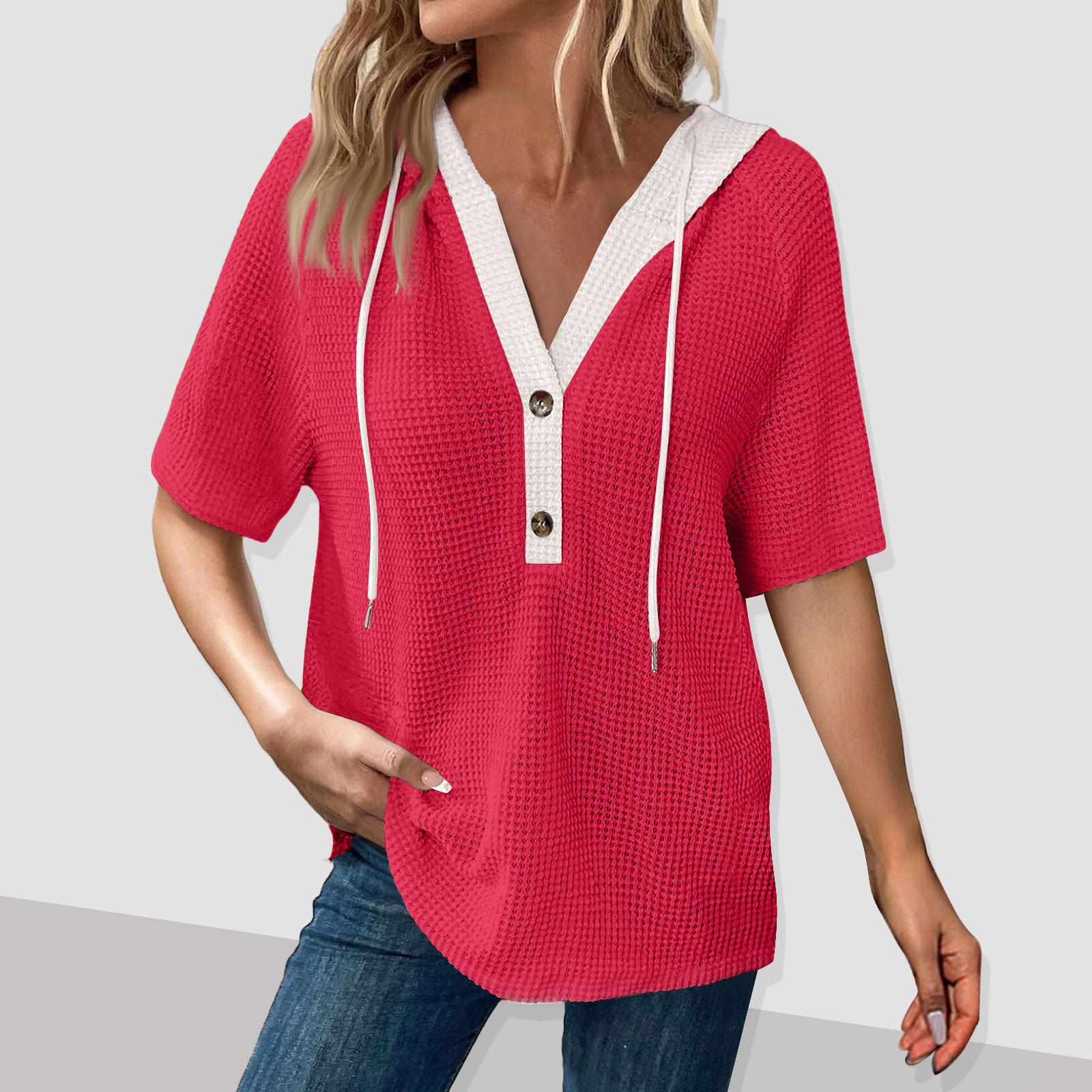 Женская модная цветная трикотажная толстовка с капюшоном на шнурке с коротким рукавом и V-образным вырезом с капюшоном XL красный