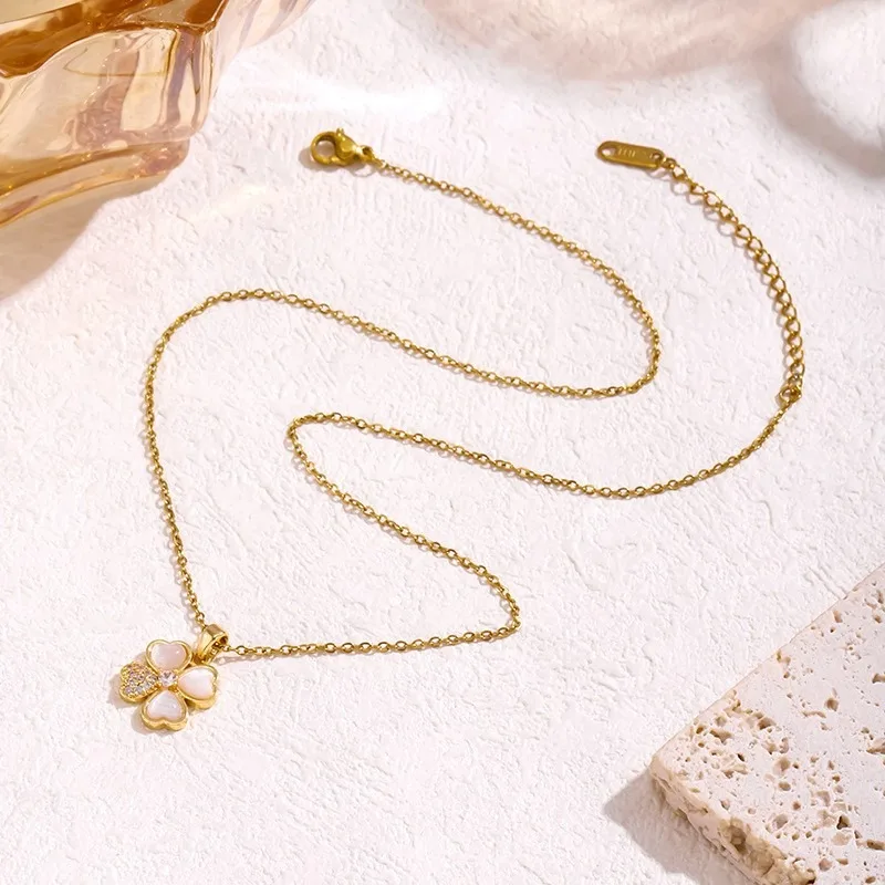 Женская модная цепочка на ключицу, нишевый стиль, модное колье из титановой стали с четырьмя лепестками, универсальный камень «кошачий глаз»