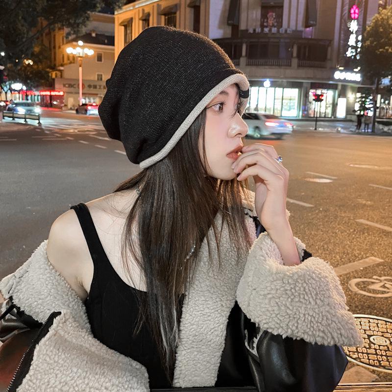 Женская модная шерстяная вязаная шапка-пуловер в корейском стиле - осенне-зимний теплый ворсовый дизайн One size чёрный
