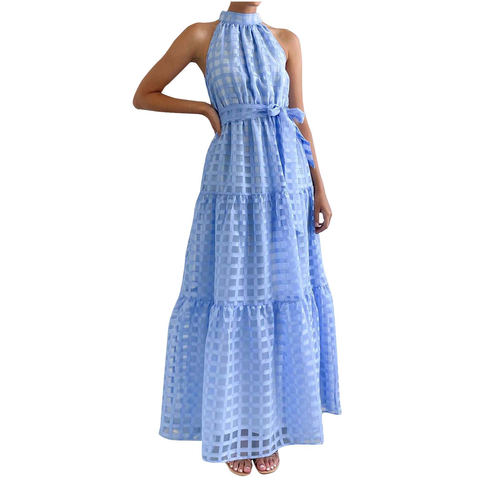 Женская молодежная модная клетчатая тонкая многослойная юбка с рюшами, туника без рукавов с воротником-стойкой, летнее длинное платье XL