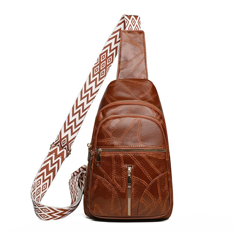 Женская нагрудная сумка из ПУ, большая вместимость, легкая сумка через плечо коричневый