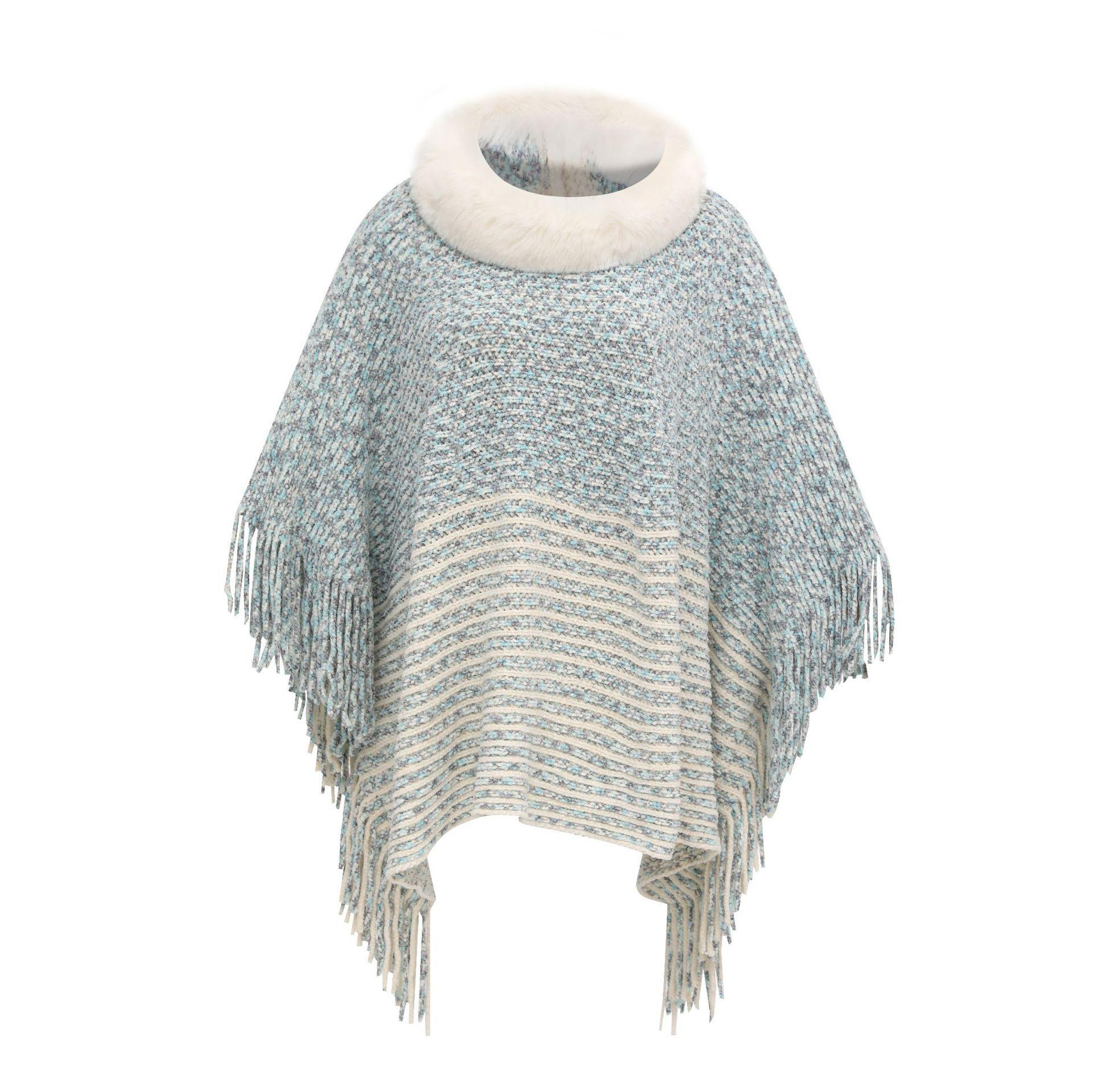 Женская накидка-шаль, воротник из шерсти кролика Рекс, воротник из шерсти, шарф-шенье, рукав «летучая мышь», шарф с кисточками 50CM синий