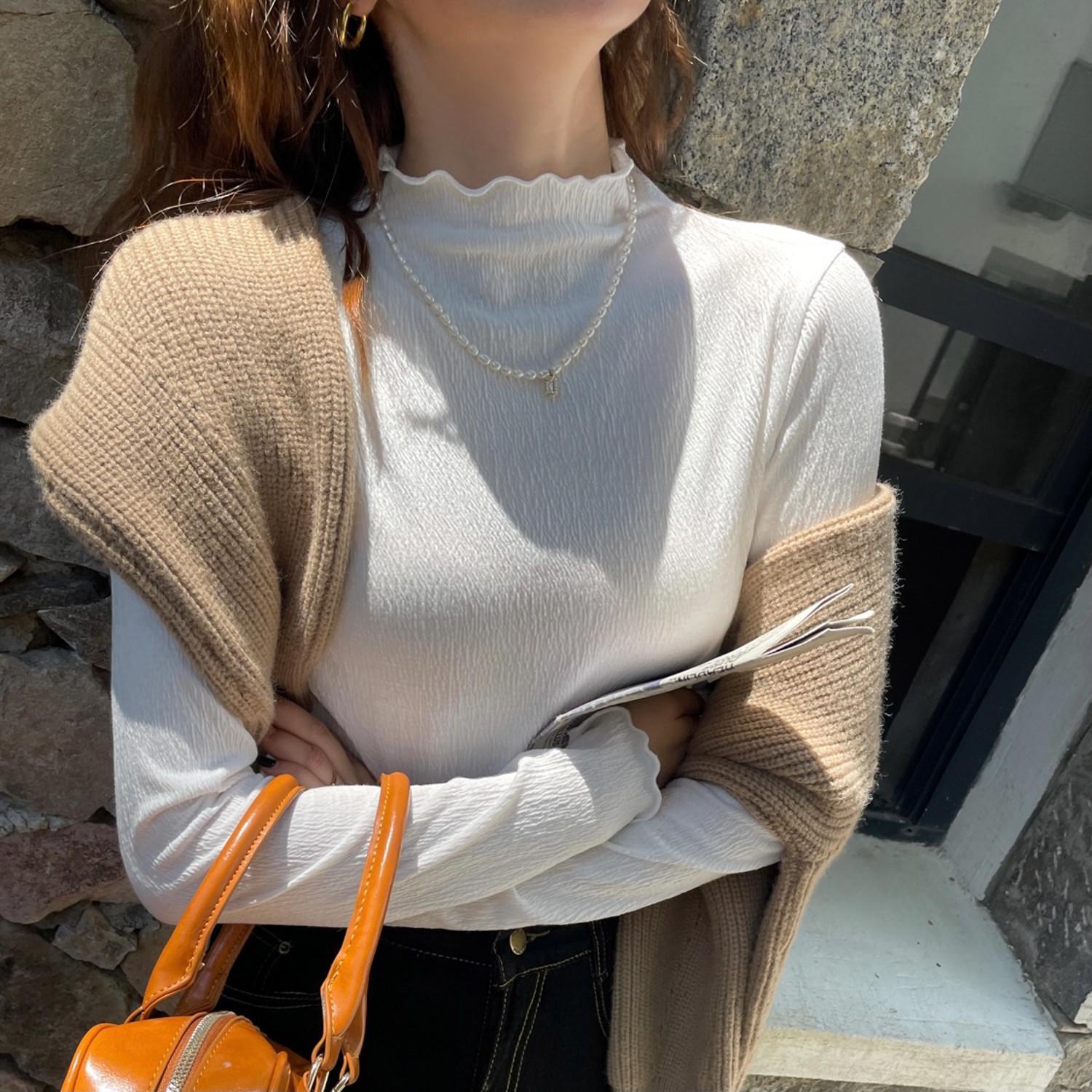 Женская нижняя рубашка с полуводолазкой и отделкой по ушам на осень и зиму, облегающая белая футболка с длинными рукавами на весну и осень One size
