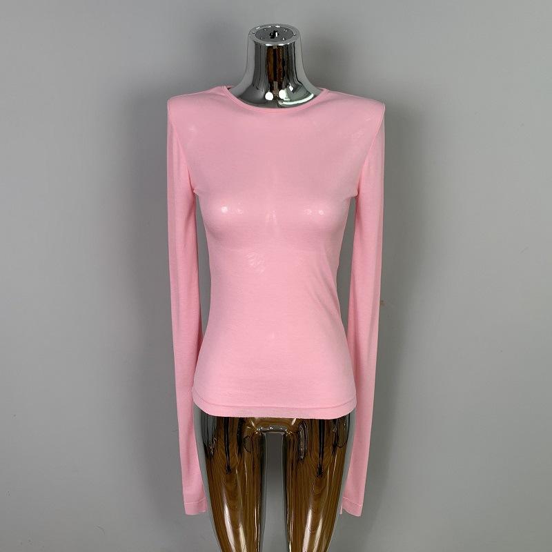 Женская новая дверь, сексуальная и слегка прозрачная обтягивающая тонкая базовая рубашка с круглым вырезом и длинным рукавом, футболка, верхняя женская одежда One size