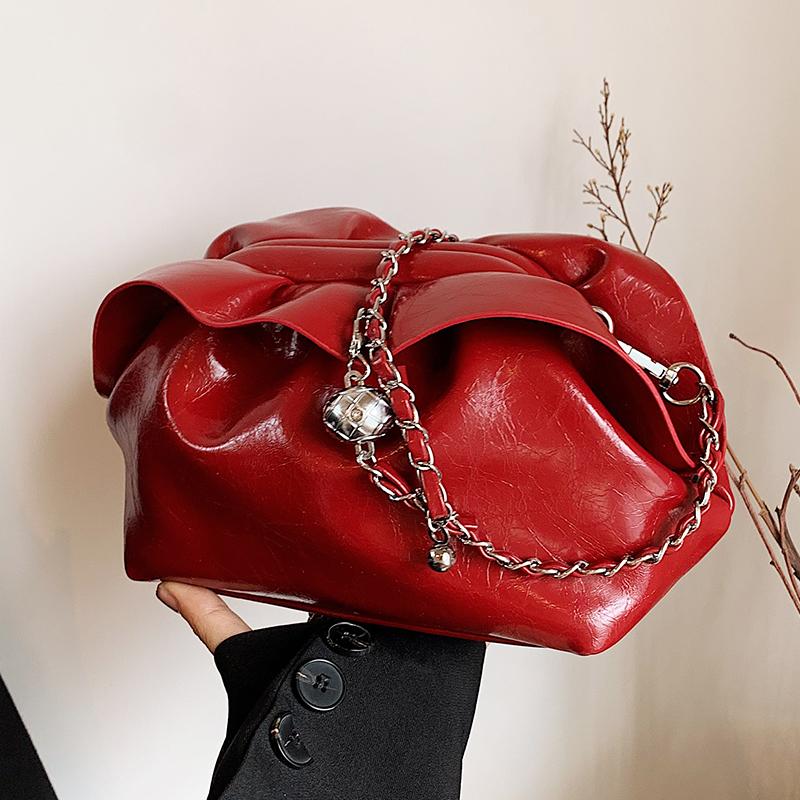 Женская новая модная сумка через плечо с цепочкой, однотонная складная сумка-облако, женская мягкая сумка из искусственной кожи на одно плечо подмышкой