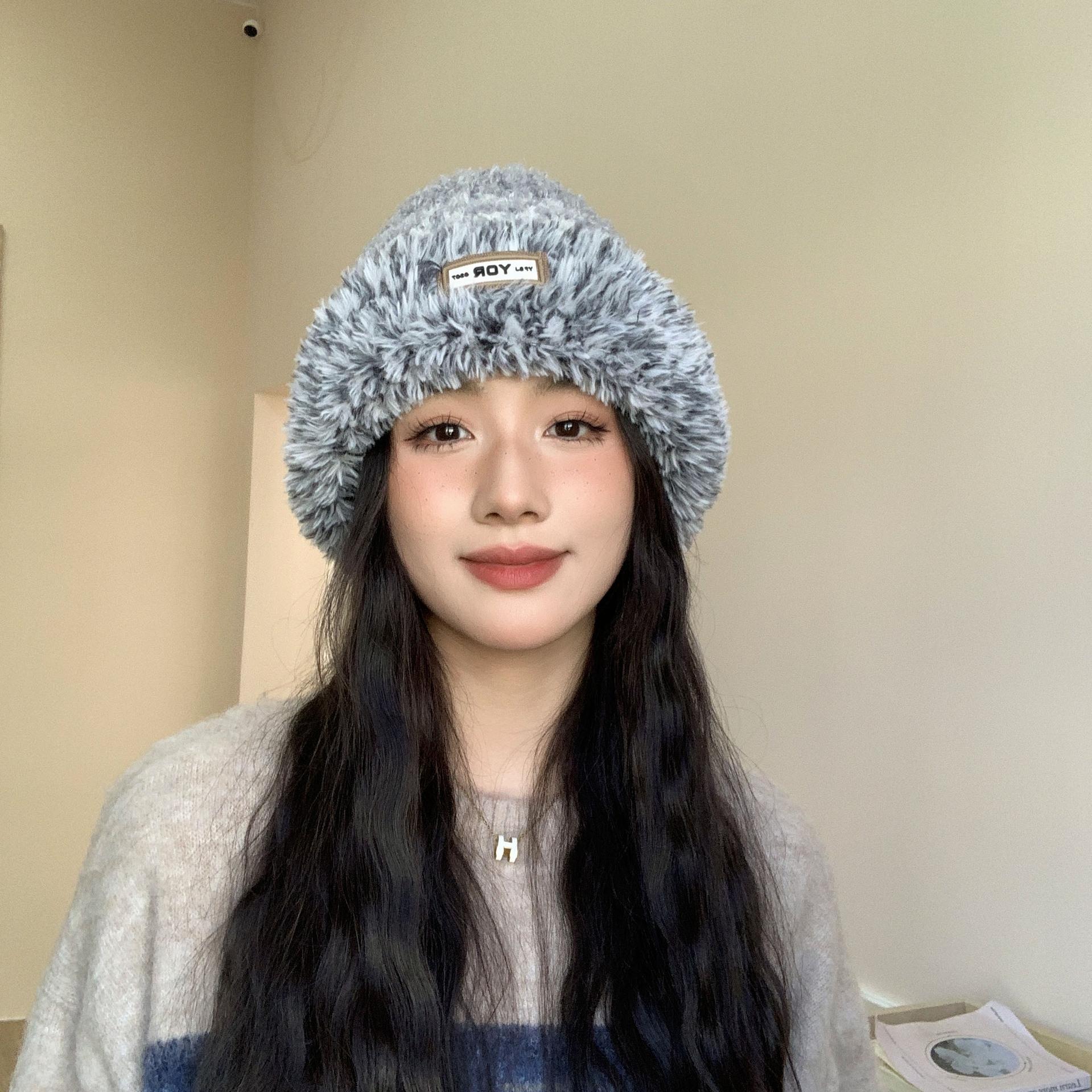Женская новая теплая плюшевая вязаная шапка в корейском стиле, модная и универсальная, защищающая лицо, маленькая ветрозащитная шапка из шерсти, защищающая уши