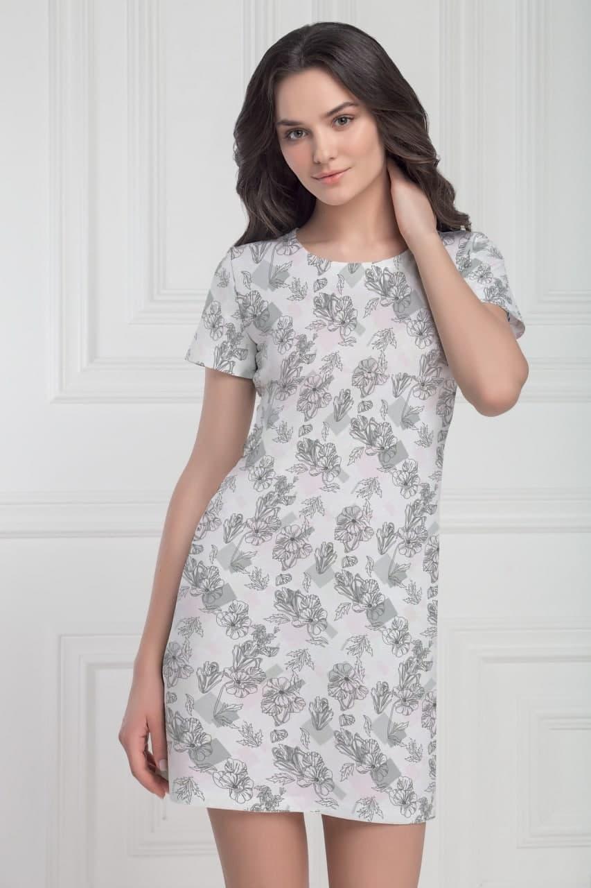 [html]Женская ночная рубашка торговой марки Jasmine с коротким рукавом выполнена из мягкого высококачественного хлопка белого цвета в контрастный цветочный принт; длина до колен; состав: 91% хлопка, 9% эластана; цвет: бело-серый; размеры: M.[/html]