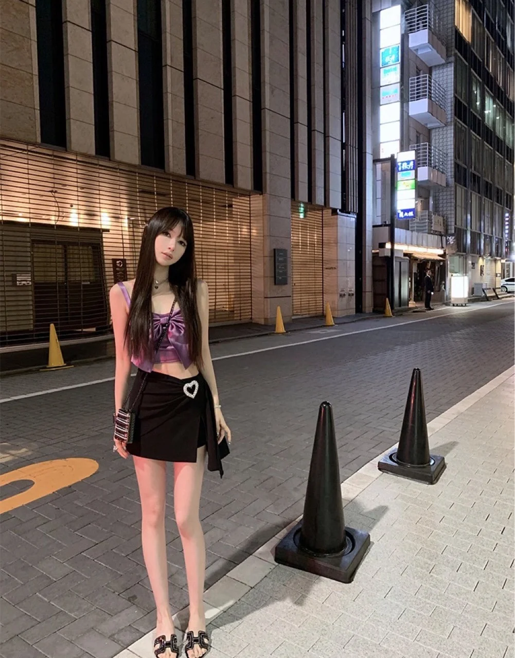 Женская облегающая короткая юбка, привлекательная черная облегающая юбка в форме сердца, со скошенными стразами и пряжкой, Весенняя блестящая юбка