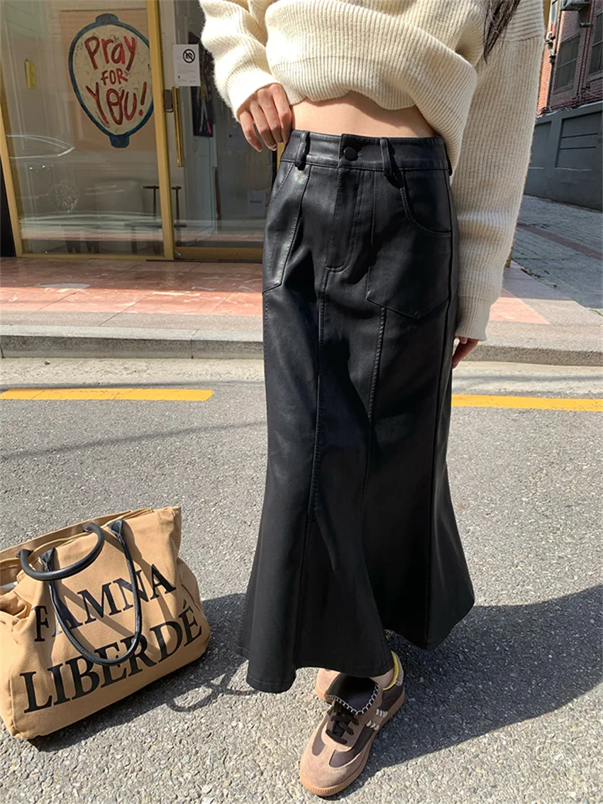 Женская облегающая юбка-годе Alien Kitty, черная Повседневная офисная винтажная юбка-годе из искусственной кожи, для осени, 2023