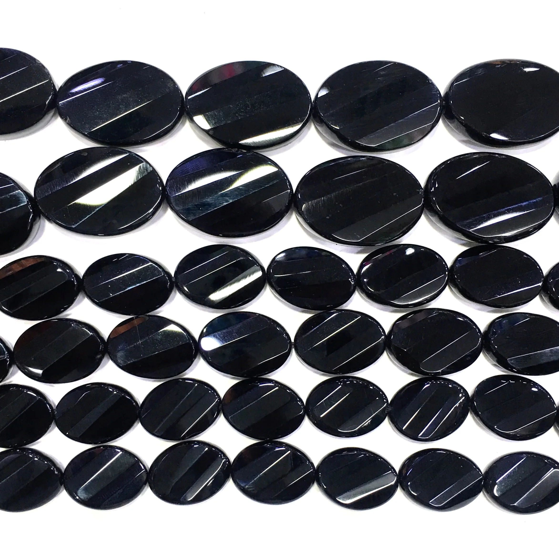 Natural Black Onyx Twisted Oval Loose Bead Healing Energy Stone Jasper DIY Jewelry Making Bracelet & Necklace Custom Design