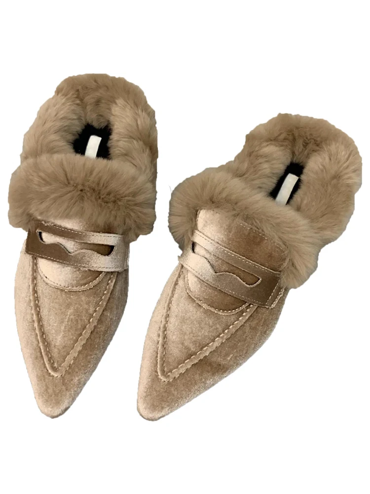 Женская обувь, Тапочки, уличная осенне-зимняя хлопковая обувь, новинка 2022, осенне-зимняя теплая обувь с острым носком
