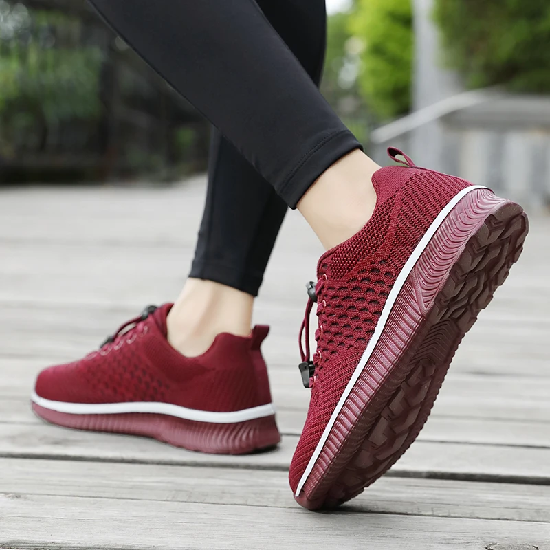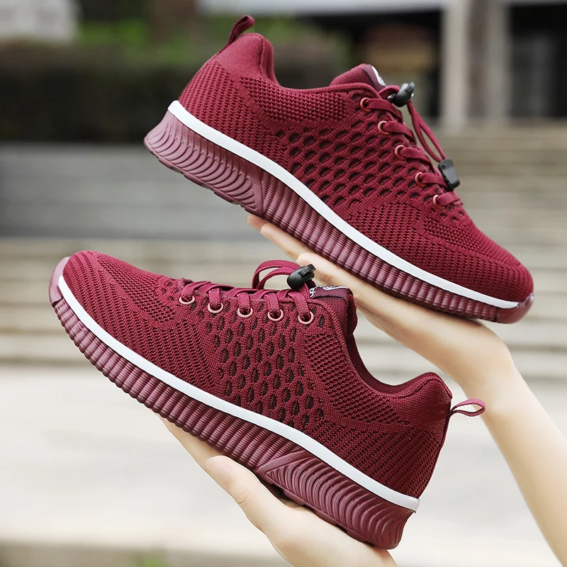 Женская обувь на плоской подошве, вязаные кроссовки, женская повседневная обувь без шнуровки, Женская сетчатая дышащая женская обувь