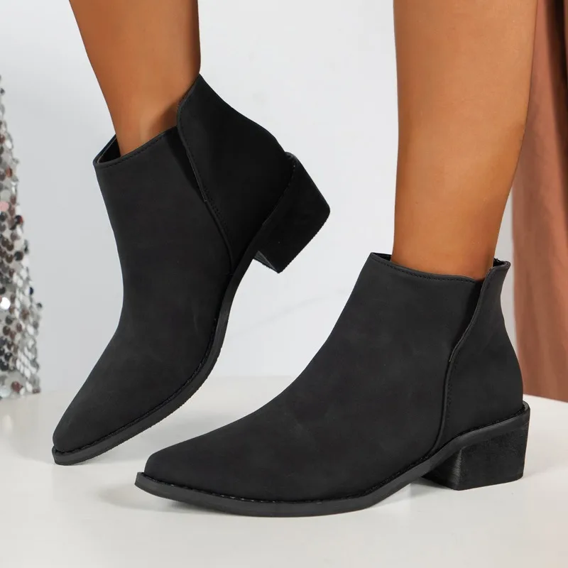 Женская обувь, распродажа 2023, новые женские сапоги с рукавом, осенняя однотонная обувь с острым носком, женские модные ботинки на низком каблуке