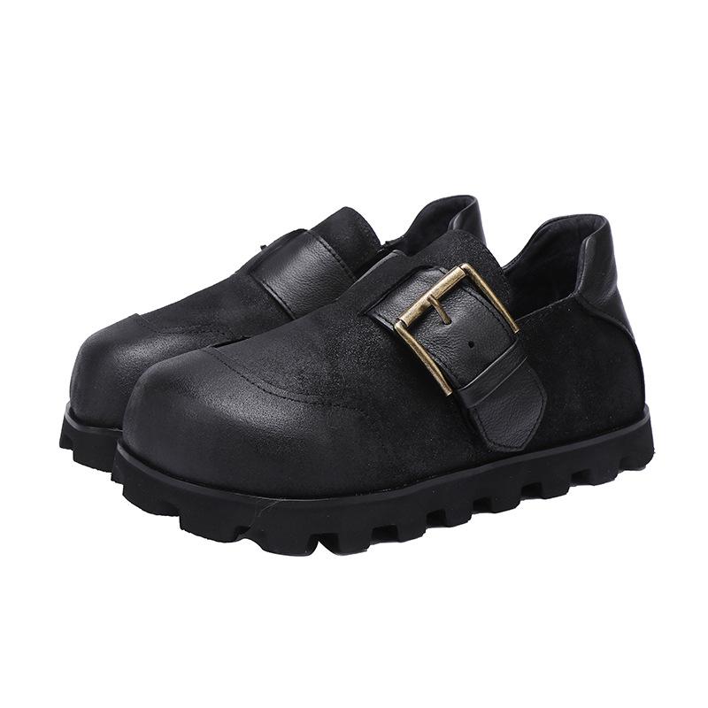 Женская обувь Johnature из натуральной кожи, ретро-туфли с внутренней и внешней отделкой из натуральной кожи, с плоским дном, ручной работы 37 чёрный