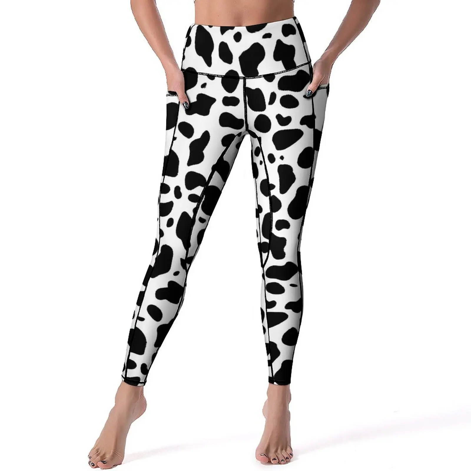 Halloween Dalmatian Leggings Black And White Gym Yoga Pants High Waist Vintage Sport Pants Pockets Stretchy Design Yoga Legging