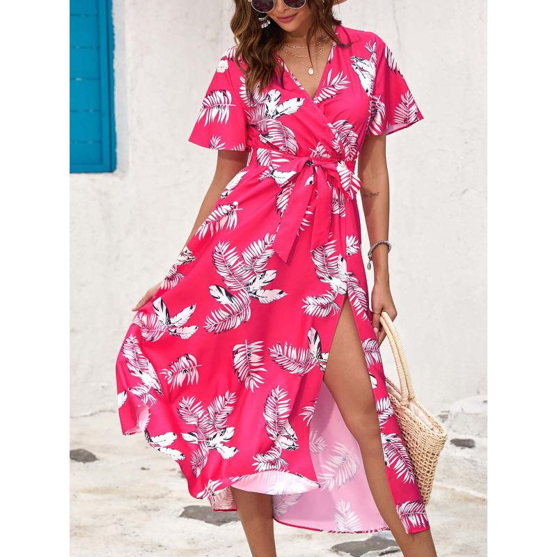 Женская одежда Популярная летняя печать с разрезами по краям Среднее и длинное платье Платье XL