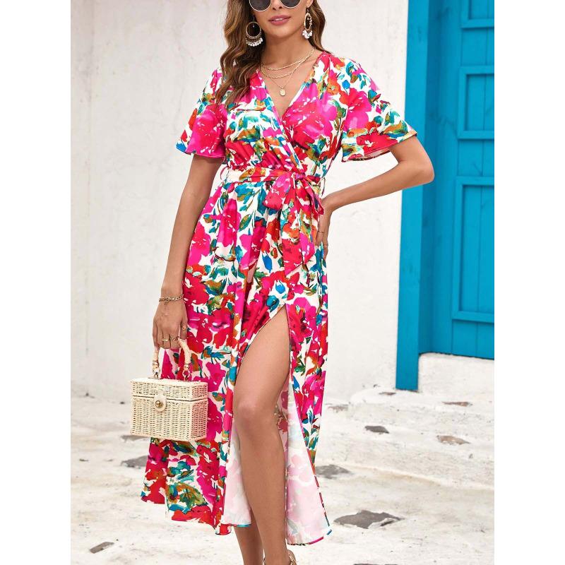 Женская одежда Популярная летняя печать с разрезами по краям Среднее и длинное платье Платье XXL