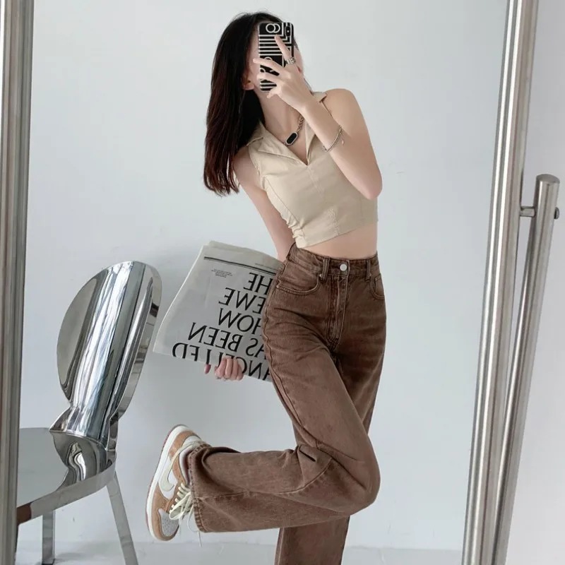 Женская одежда, джинсы с высокой талией, женские джинсовые брюки, Корейская уличная одежда Y2k 90-х, одежда, брюки, джинсовые брюки для женщин Yk2