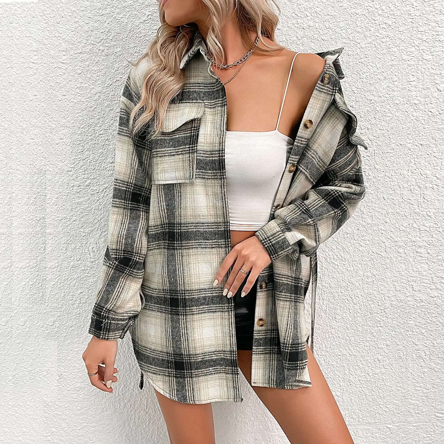 Женская одежда, осень-зима 2022, клетчатый кардиган, винтажное утепленное шерстяное пальто с лацканами для женщин