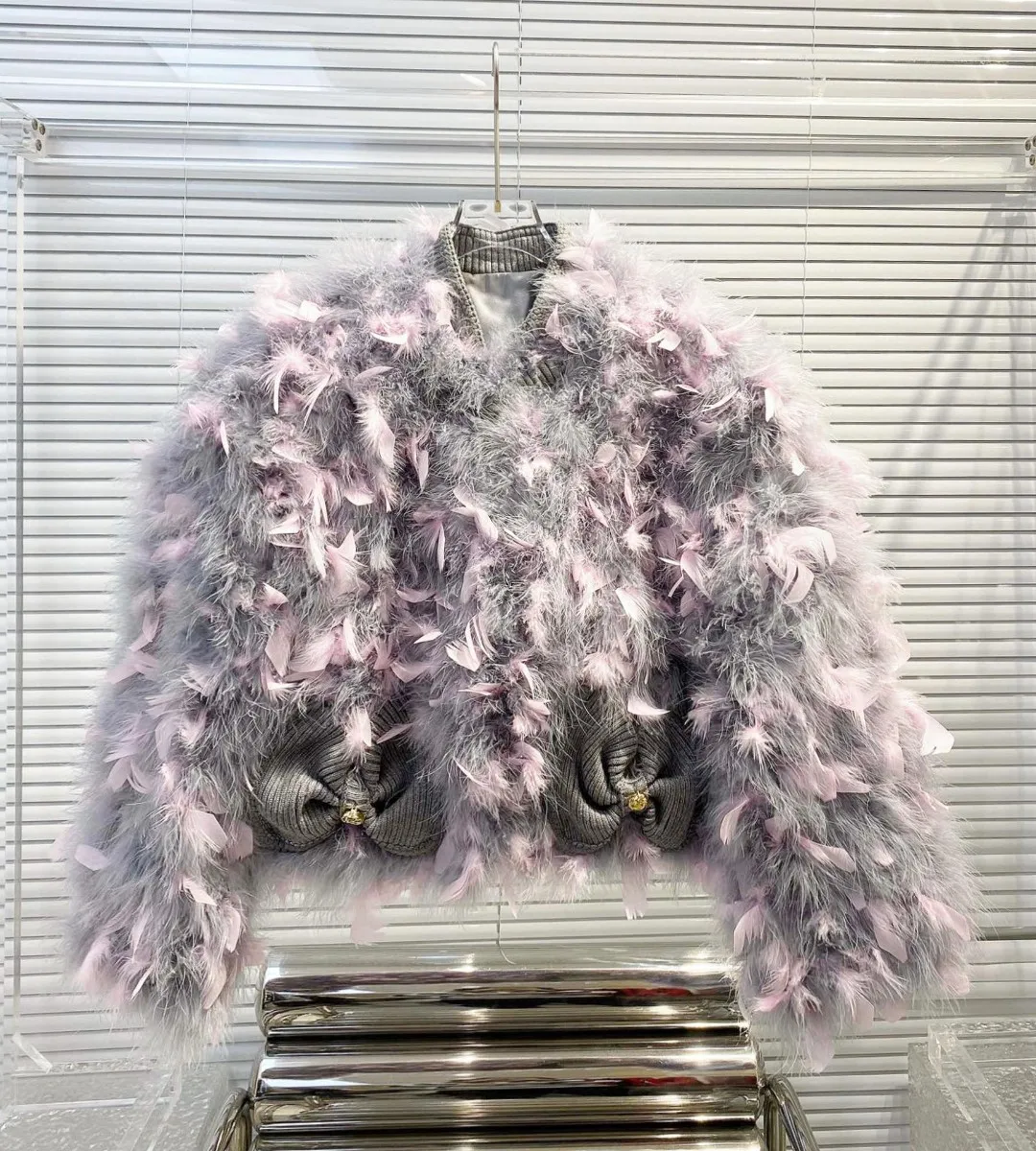 Женская одежда 2023, Высококачественная шикарная куртка с перьями, Осень-зима, новинка 1,027