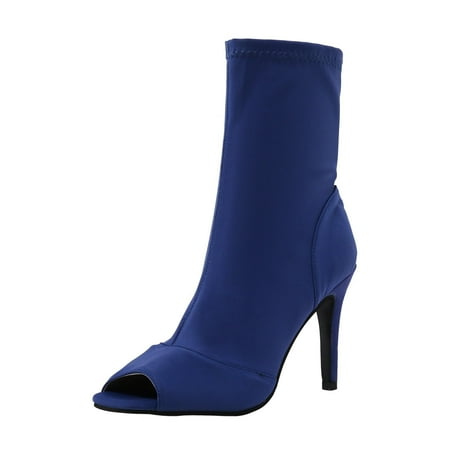 Women Walking Shoes Womens Shoes Solid Color Casual Elastic Fabric Side Zipper Square Toe Stiletto Fish Mouth High Heels high heels for Women Mesh Blue
