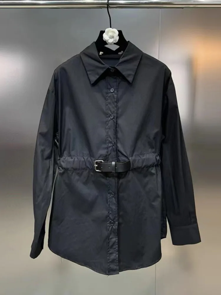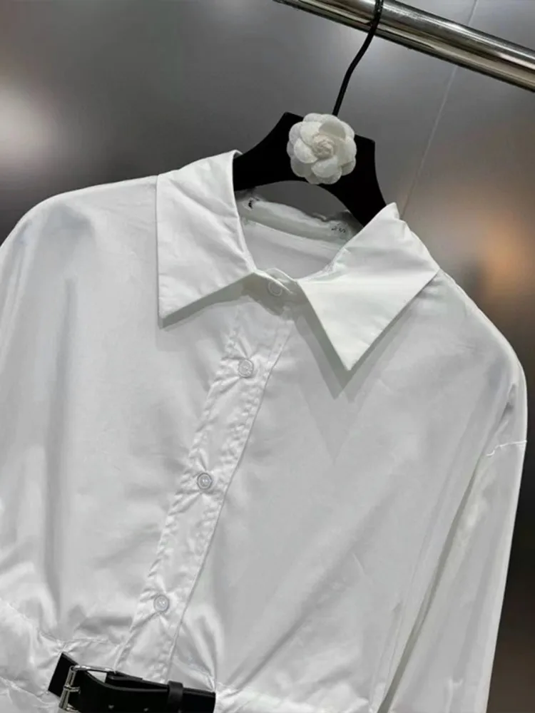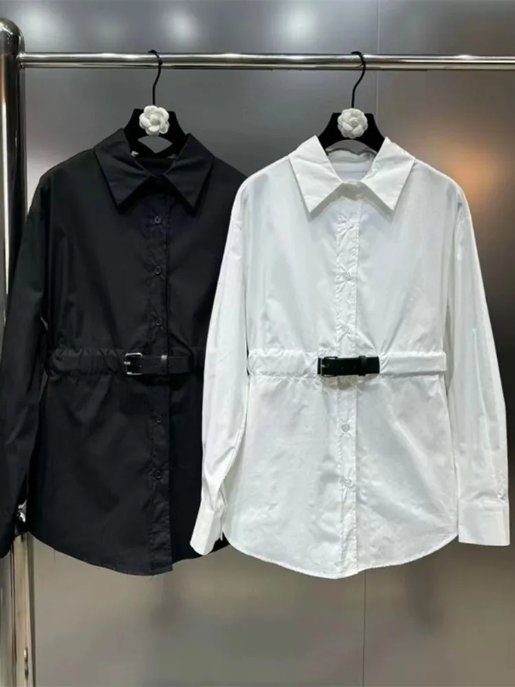 Женская однобортная офисная блузка [EWQ], белая офисная блузка с длинными рукавами и поясом CPDB02, весна-осень 2024