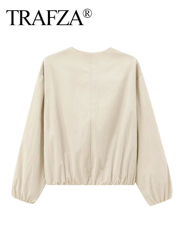 Женская однотонная куртка с карманами и круглым вырезом, свободного покроя