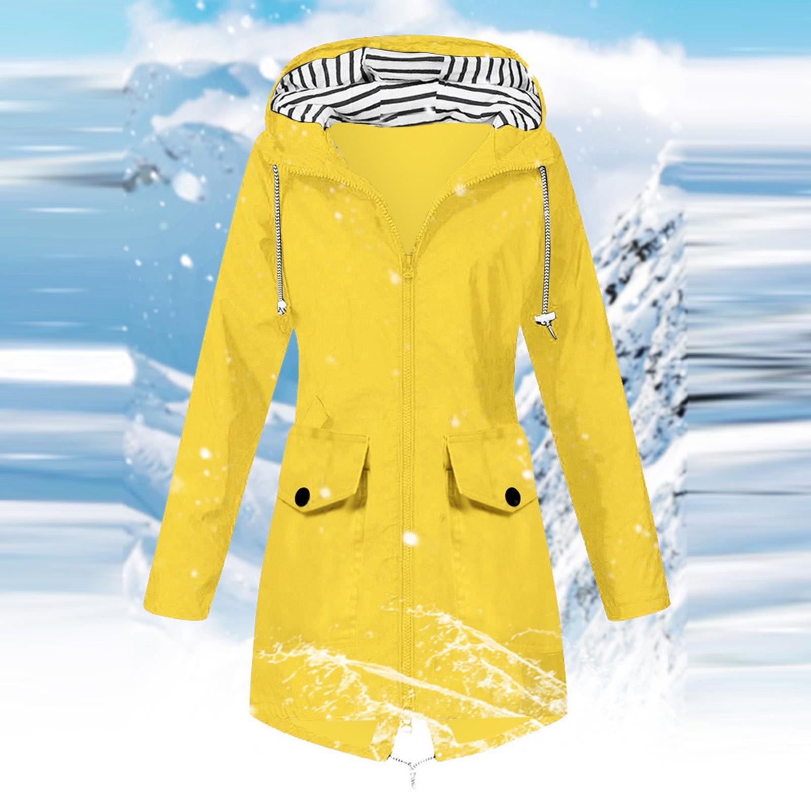 Женская однотонная полосатая дождевик на открытом воздухе плюс водонепроницаемый плащ с капюшоном ветрозащитный XL жёлтый