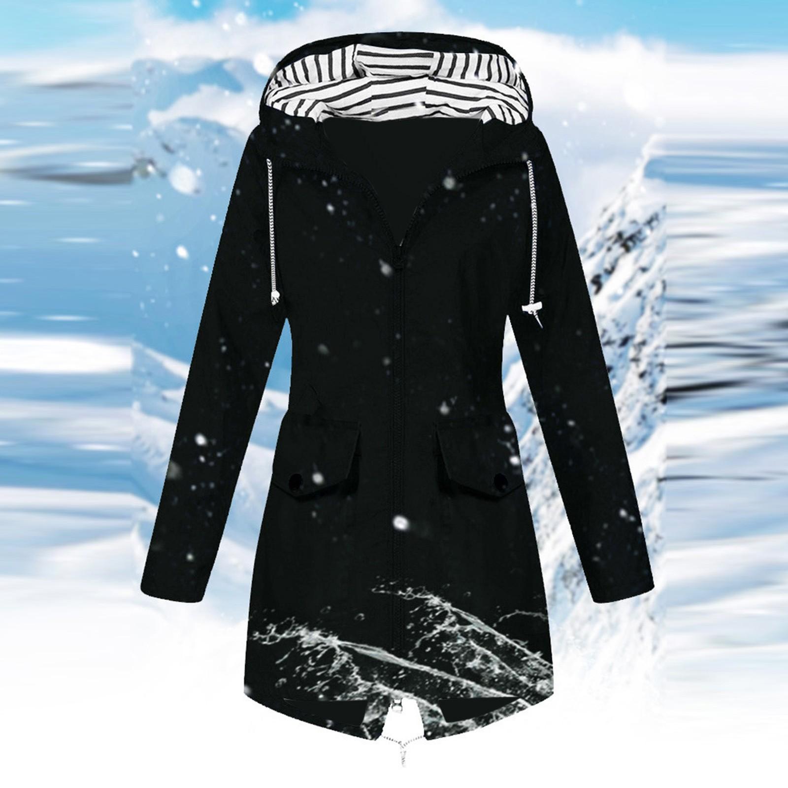 Женская однотонная полосатая дождевик на открытом воздухе плюс водонепроницаемый плащ с капюшоном ветрозащитный L чёрный