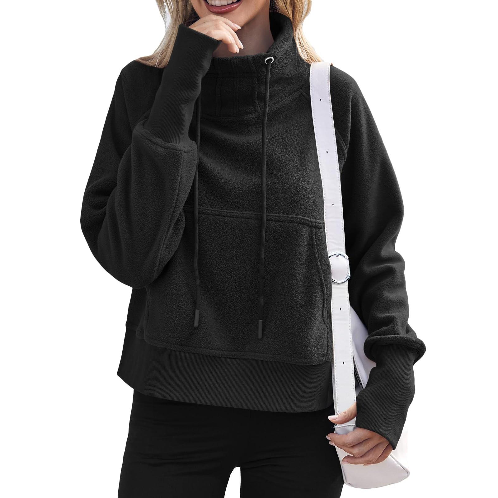 Женская однотонная свободная толстовка с капюшоном и длинным рукавом, с коротким открытым животом M чёрный
