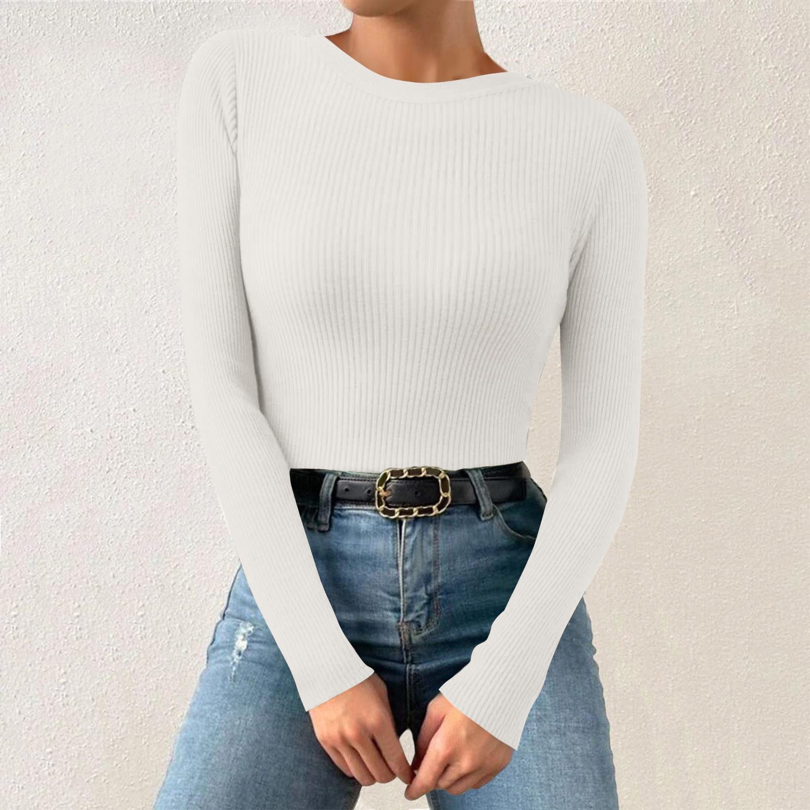 Женская однотонная футболка с круглым вырезом и вертикальными длинными рукавами XXL белый