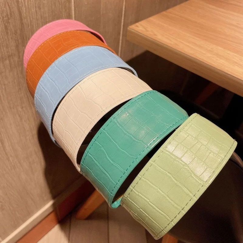 Женская однотонная широкая повязка на голову с текстурой под кожу крокодила
