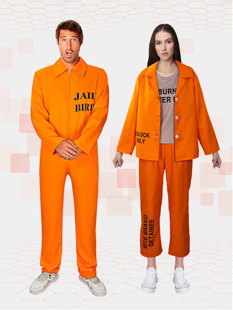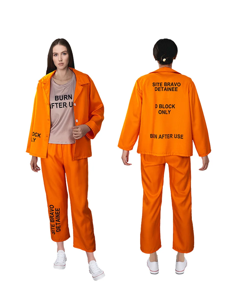 Женская оранжевая Униформа с буквенным принтом, костюм для Хэллоуина, униформа для взрослых