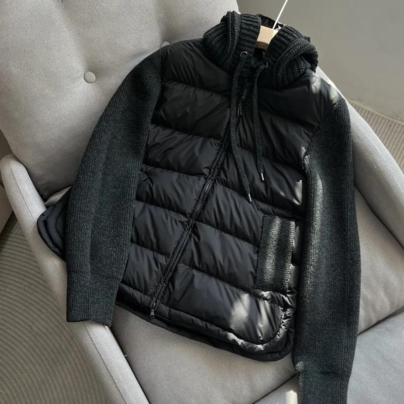 Женская осенне-зимняя вязаная куртка пэчворк, теплая, на кулиске, с капюшоном, легкое пуховое пальто XXS