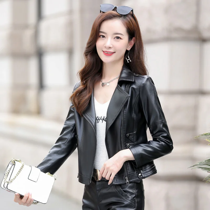 Женская осенне-зимняя куртка из искусственной кожи с длинным рукавом
