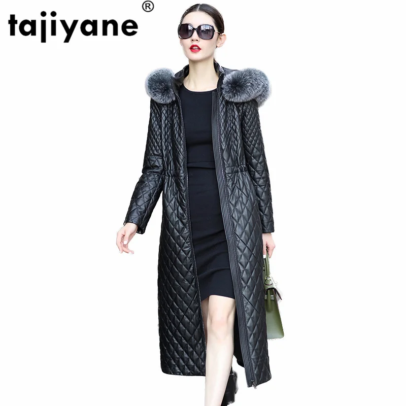 Женская осенне-зимняя куртка из натуральной кожи с меховым воротником