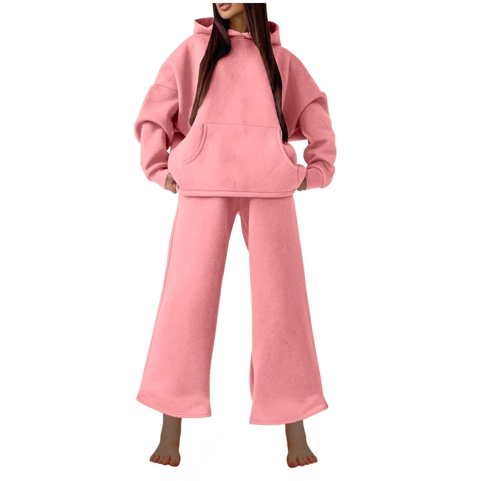 Женская осенне-зимняя мода повседневный спортивный стиль с капюшоном и карманом толстовка комплект из двух предметов M розовый