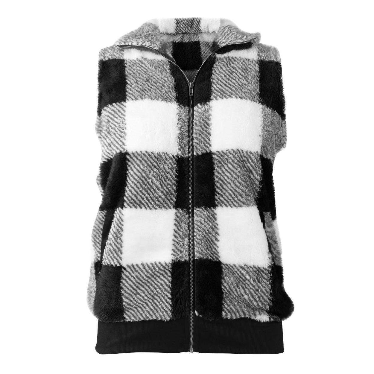 Женская осенне-зимняя модная повседневная клетчатая плюшевая куртка-жилет на молнии XXXL серый