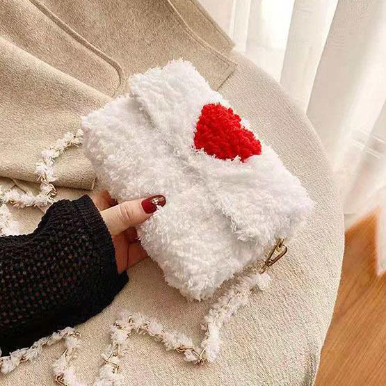 Женская осенне-зимняя мягкая плюшевая сумка-мессенджер, длинная плюшевая сумка, однотонная сумка на одно плечо, тканая сумка с узором в виде сердечек 20*14*5cm