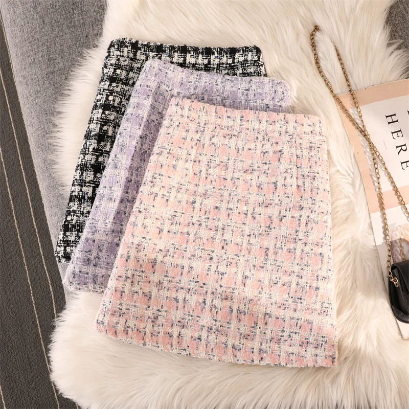 Женская осенне-зимняя новая очаровательная шерстяная твидовая юбка с высокой талией