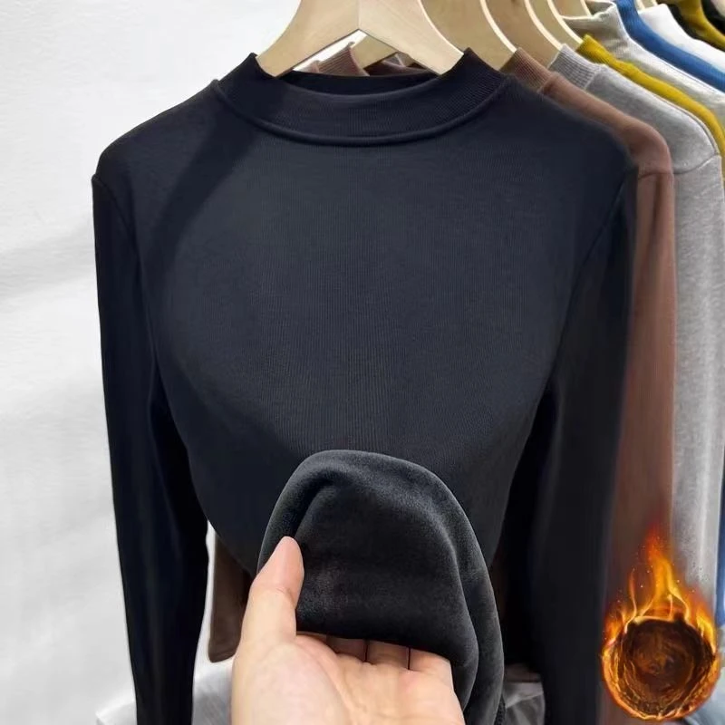 Женская осенне-зимняя облегающая футболка с воротником-стойкой, модель H359