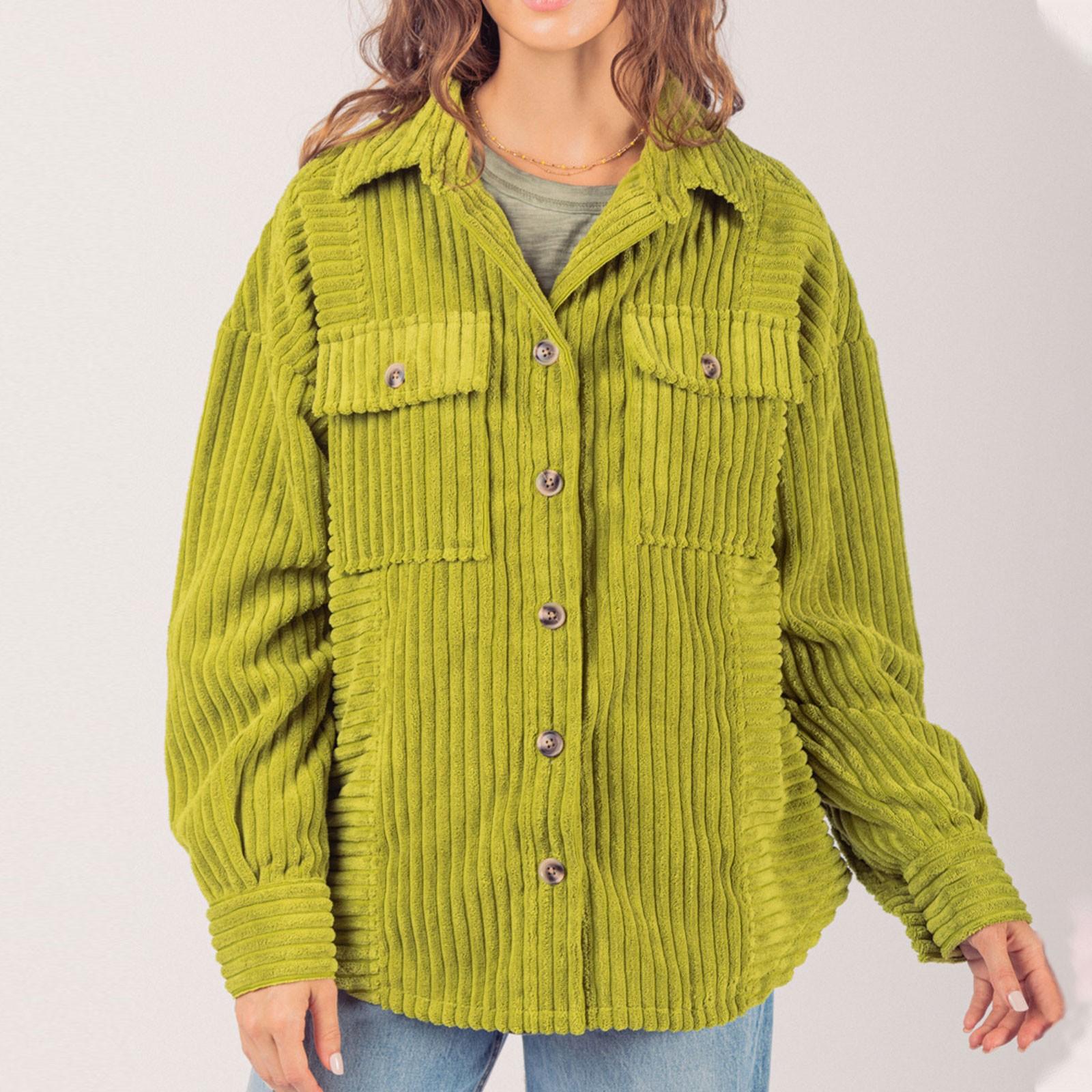 Женская осенне-зимняя однотонная модная полосатая рубашка с большим карманом S зелёный