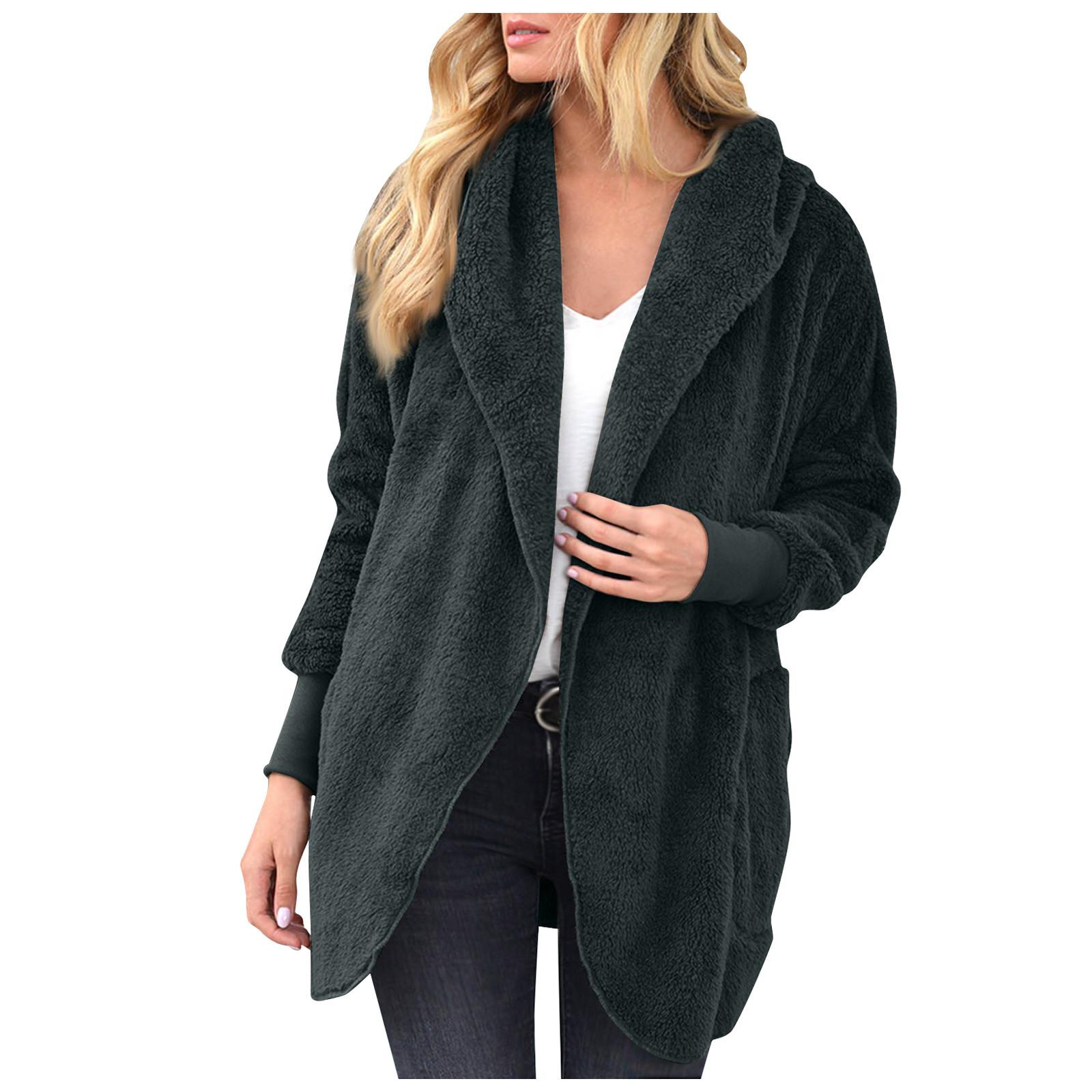 Женская осенне-зимняя плюшевая куртка средней длины с отворотами и капюшоном XL