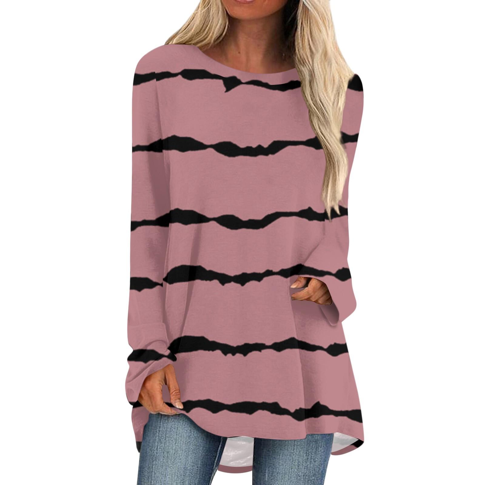 Женская осенне-зимняя повседневная длинная свободная футболка с длинными рукавами и круглым вырезом L розовый