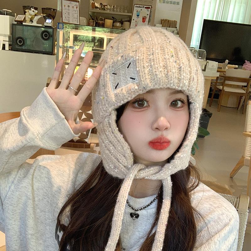 Женская осенне-зимняя теплая утолщенная защитная шапка для ушей из холодного меха, бархатная вязаная шапка для улицы, милая, симпатичная, красочная шапка One Size бежевый